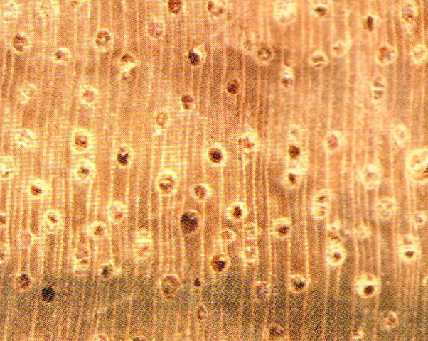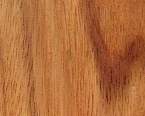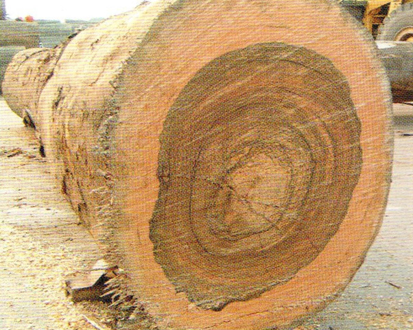 心邊材區(qū)別明顯。心材暗褐色,常帶有深褐色至黑色同心圓狀的條紋,略似核桃木。邊材很寬,灰黃色或淺玫瑰色,寬可達20cm以上。生長輪略明顯、較均勻。